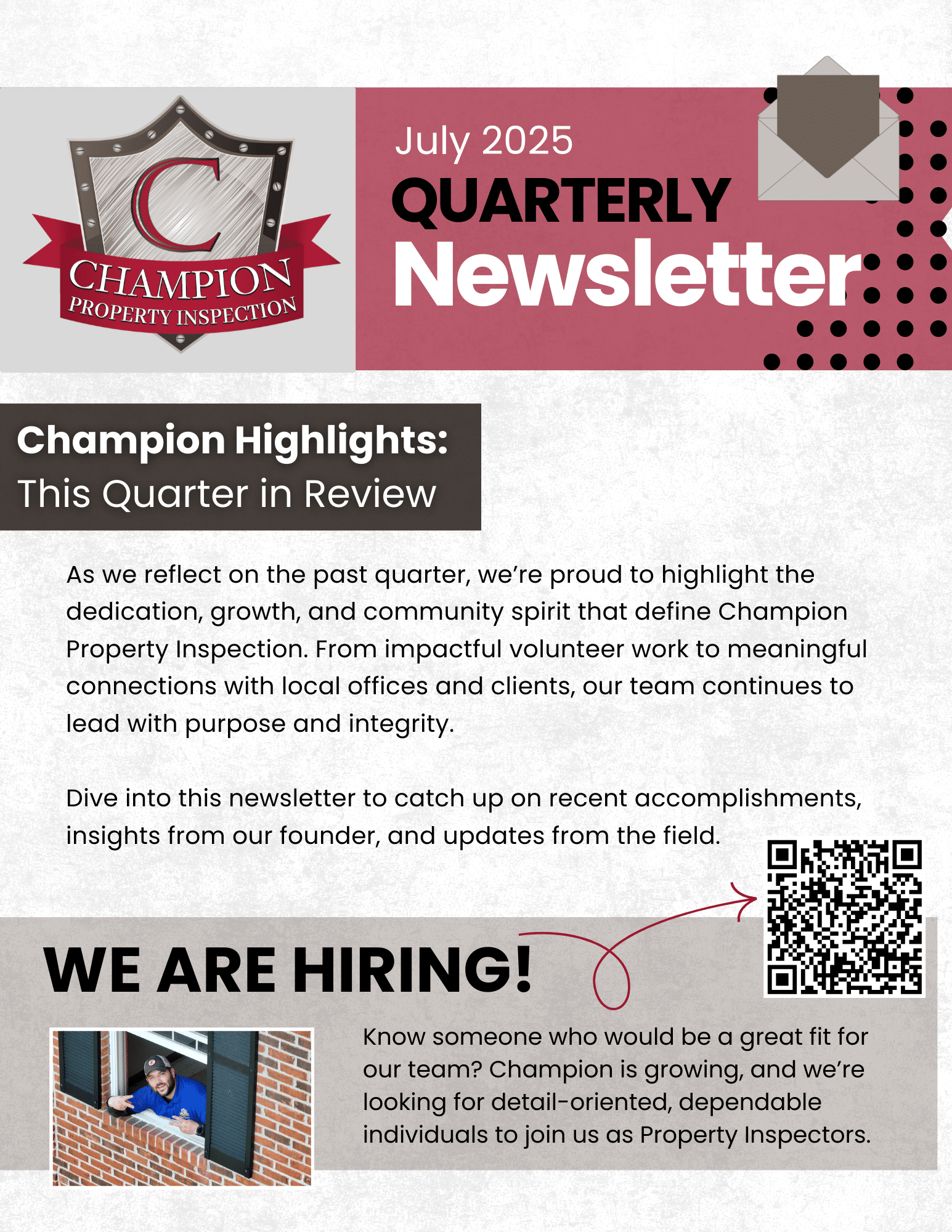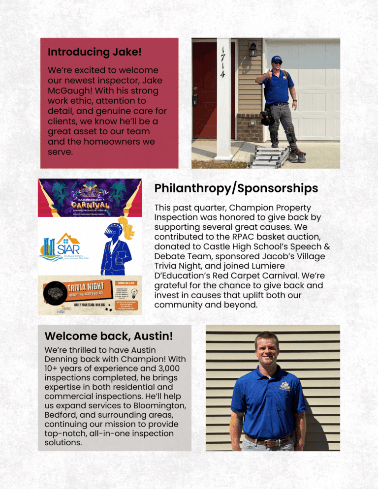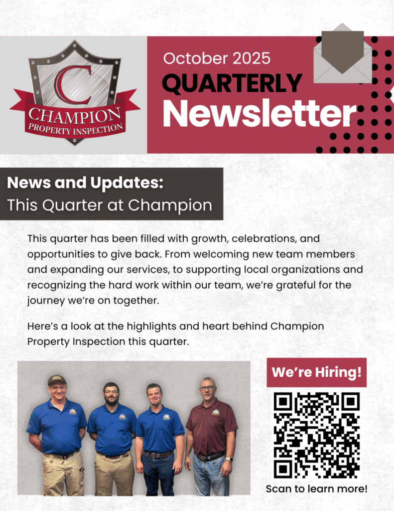 So much to be grateful for this quarter — new faces, community moments, and continued growth. Take a look at the highlights and heart behind Champion Property Inspection in our latest newsletter!