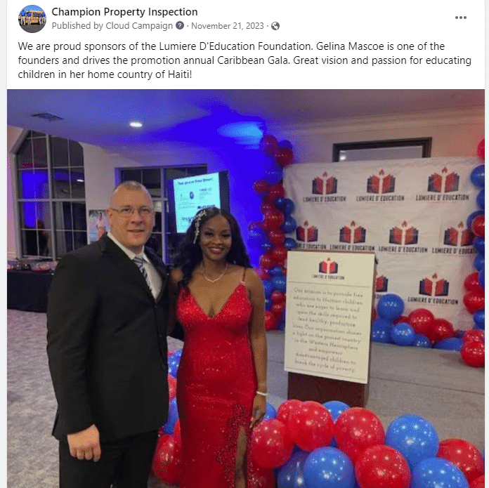 A few members of our team were happy to attend the Lumiere D’Education Foundation gala. Their mission is to provide free education to Haitian children and break the cycle of poverty. It was a wonderful event and Champion Property was proud to be a sponsor of this worthy cause!