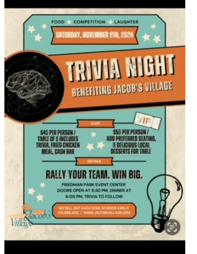 Champion Property Inspection is proud to be a sponsor of Jacob’s Village Trivia Night on November 9th.